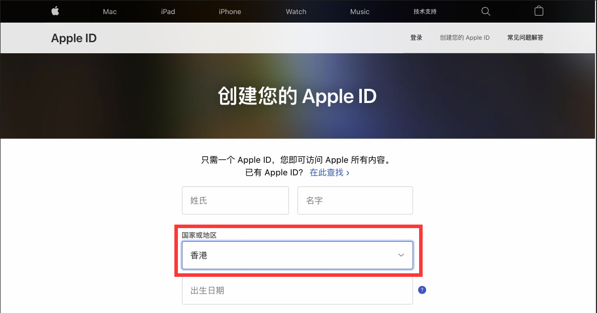 1 注册一个新的香港地区苹果商城ID账号